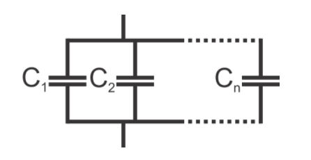 以下等式用于確定多個電容器并聯的等效電容: